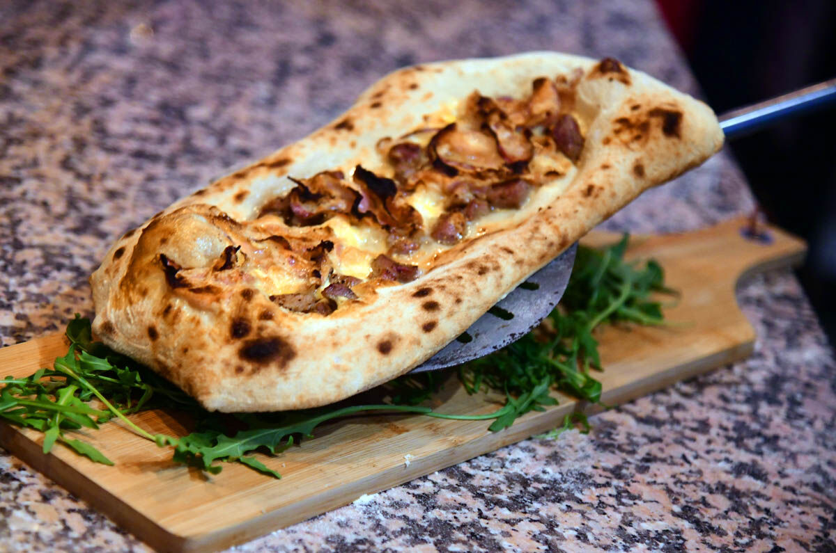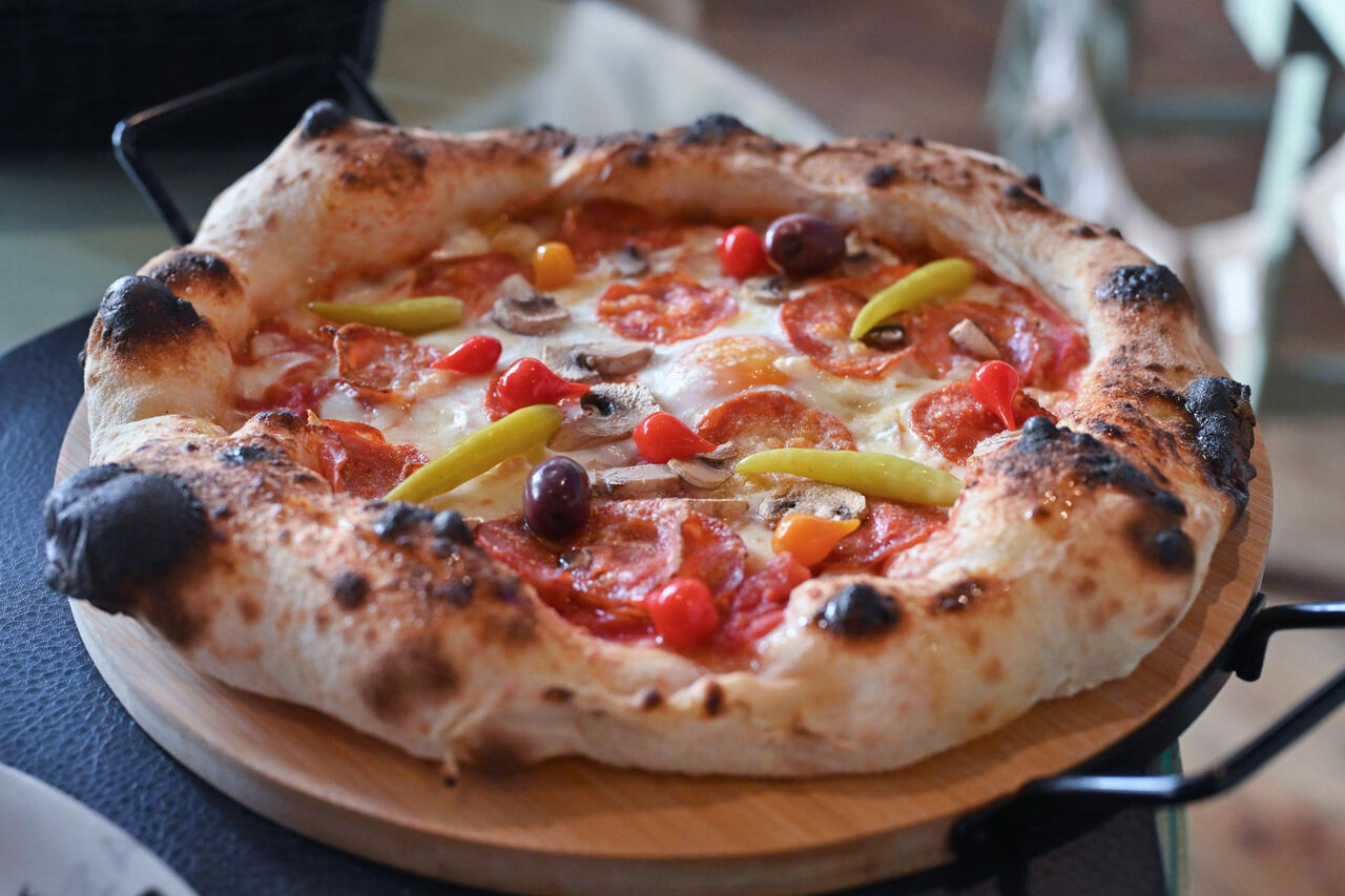 Pizza “Olioli” – Inspirirana makedonskom pastrmajlijom, pizza Olioli spaja pancetu i jaja na tijestu, donoseći jedinstven okus koji podsjeća na tradiciju Štipa.